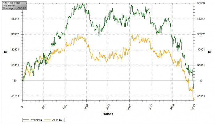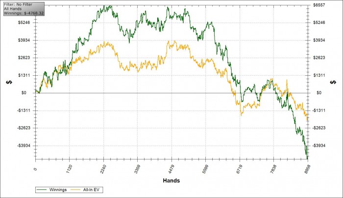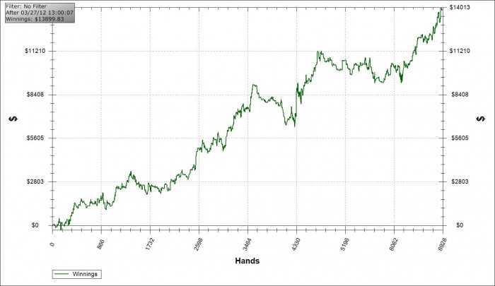 Насчёт прогресса. Я на самом деле мало разбираю свои сессии. Только те руки , что отметил, особо интересные. Ну таковых 2-3 за день. Больше всего, как я думаю, мне помогли воды и практика. И то и то должно быть вдумчивым. Те немногочисленные воды по плоха , которые мне доступны я посмотрел думаю не менее 4 раз каждый. И практика должна быть не на автопилоте. Пока я внимателен , мне достаточно нескольких секунд после раздачи и просмотра в реплеере прямо во время игры, чтобы проанализировать раздачку, в меру своих сил, и сколько бы я после сессии на неё не смотрел бы редко когда могу придумать что-то новое.