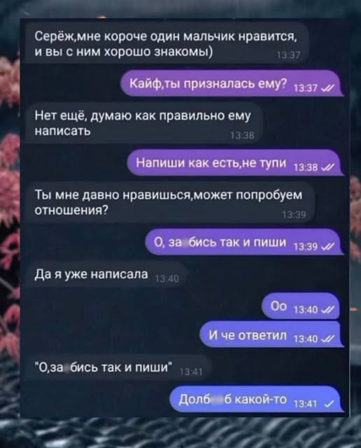 Дизель @ 06.02.25Хаха, сейчас фильм смотрю (Джой: Маленькое чудо, об изобретении искусственного оплодотворения), так там героиня из 60х тоже не понимает намеков и за прямоту. Парень проводил ее домой и у дома сказал, что она ему нравится. Та не особо отреагировала, он чуть расстроился и уже попрощался, развернулся уходить, как тут прилетело "если обещаешь не привязываться - можем заняться с тобой сексом". Обещание было инста выдано