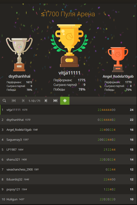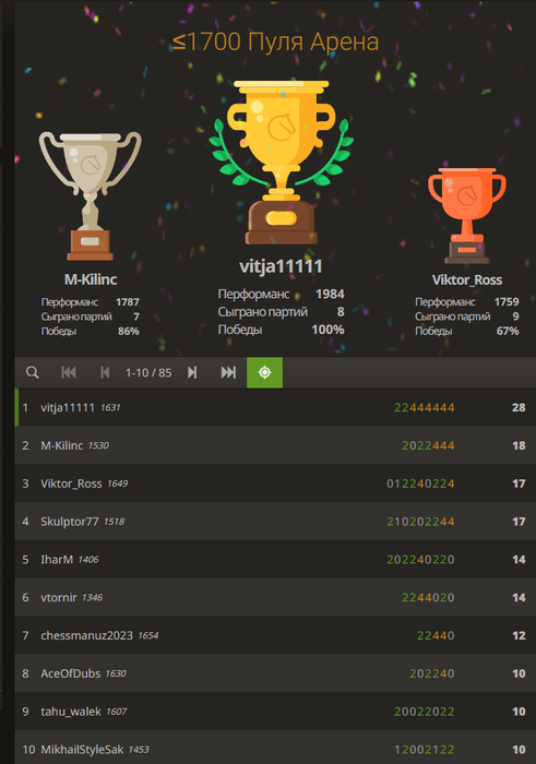 Выиграл турнир во всех партиях играл дебют плотина бобра)))
