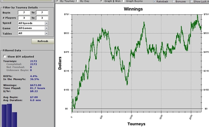 С 11 февраля начал катать спины, EV и реальный профит шли параллельно, попал в x100 на 15-м, затащил, причём без крупных выставлений, т.е. по EV там всё в порядке, сразу после него наблюдаю следующую картину: