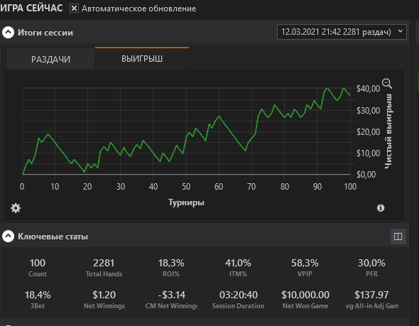 Привет. Почему хм3 показывает неправильно профит в спинах? Постоянно показывает не целые значения. В спинах профит должен быть кратен 1. А показывает вместо 44 баксов на графике 36,64, а внизу пишет вообще 1,2 бакса... И хад во время сессии то появляется, то пропадает. Это на покерстарс и если обновлять сверху, то значение net winning постоянно меняется