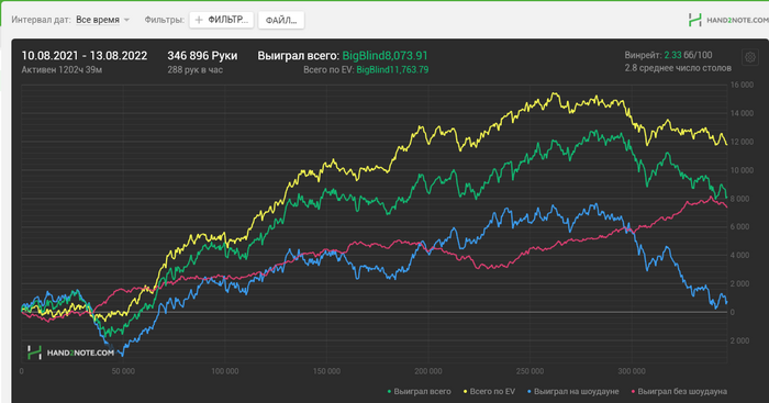 Игра кстати отвратительная, випы встречаются очень редко. Последнее время играю поздний вечер, ранняя ночь, прайм тайм, но результат не меняется. Надо походу реально уезжать, где есть старзы и 888 и продолжать играть как играл да и все. На этой помойке денег не выиграть как будто бы, соотношения рег/вип оставляет желать лучшего. Получается выигрывает на короткой дистанции тот, кому повезло попасть на стол с випом, и кого не ебет диспа на средних составах, кто в борды попадает....