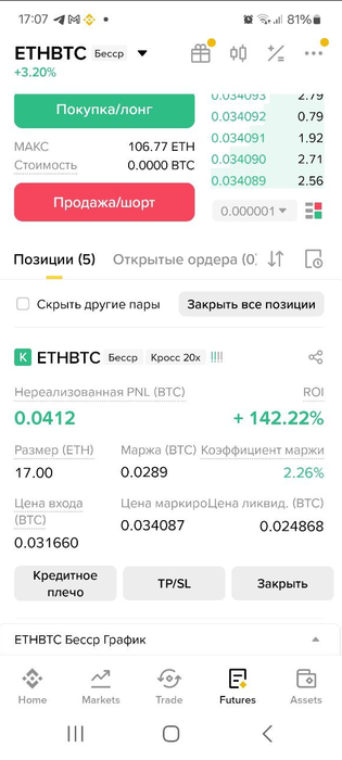 Жалею только что мало открыл эфира - около 40% банкролла. Раньше открывал позы по биткоину на 100%.