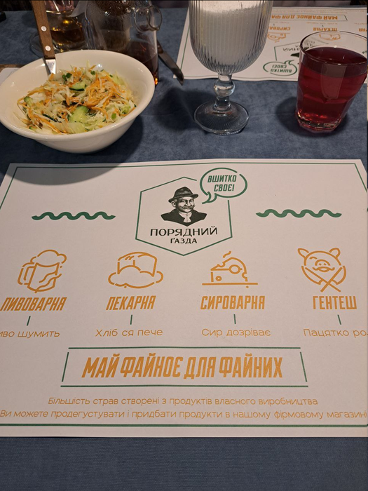 Владелец ресторана, чуть старше меня, тоже много чем занимался. Помню были у него огромные склады, где он торговал строй-материалами оптом. А сейчас переключился на этот ресторан (наверное уже лет десять) и потихоньку разширился так, что имеет и свою пивоварню, и сыроварню, и поросят выращивает. Очень энергичный и постоянно в движении.