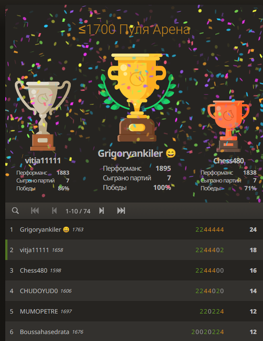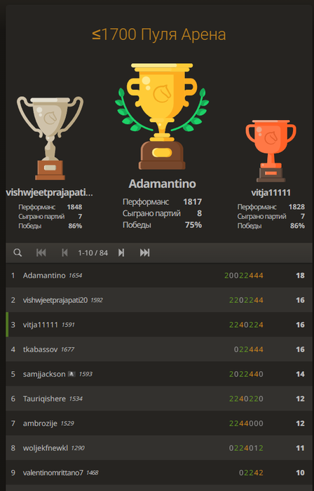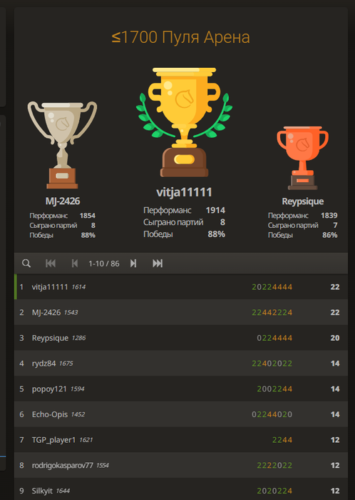 В шахматах совсем нереальный стрик: турниров 10 уже не могу в топ 3 попасть(((