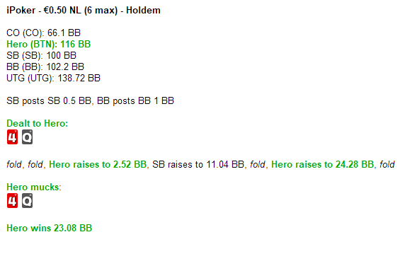 В итоге у этого фиша на 700 рук винрейт 100+ и со стола я-таки вышел до него)))