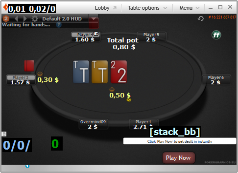Дело в том, что я не пользуюсь переводом chips to BB, стеки выведены через HUD, поэтому ставку на пре или постфлопе вижу только в фишках.