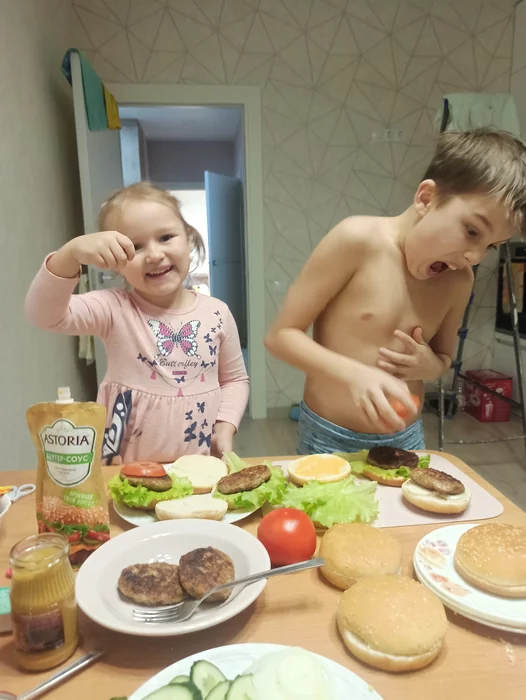 Самодельные бургеры вообще тема. Раз в два месяца делаем... мы только в магаз и котлеты пожарить, а дети сами уже дальше.