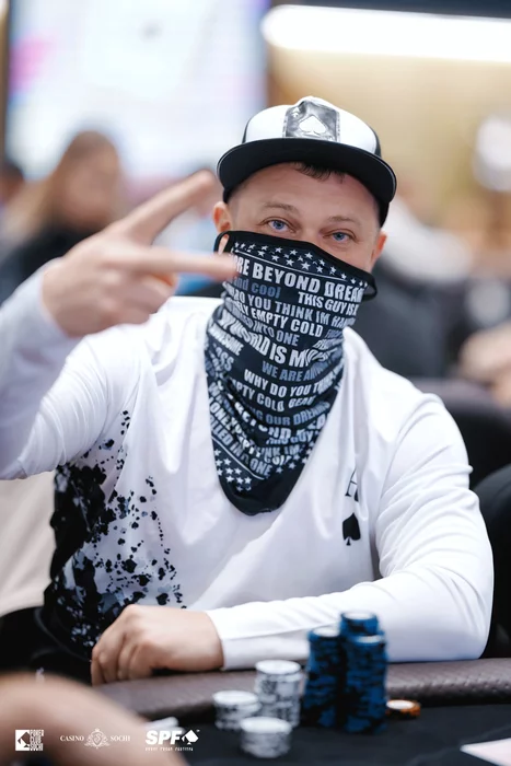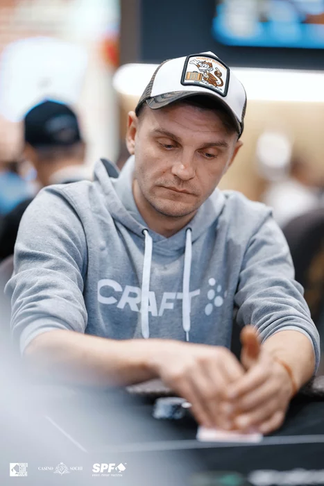Это была раздача за чиплидерство, но важнейший коинфлип Дмитрий Игнатьев потащить не смог. Лучшим результатом у него ранее было четвертое место в Sochi Poker Cup, но эта серия стала для Дмитрия прорывной в офлайне. Меньше чем за неделю он стал раннер-апом Magic Bounty и дошел до пятого место в Warm Up, которое принесло ему 12,340 у.е. призовых.