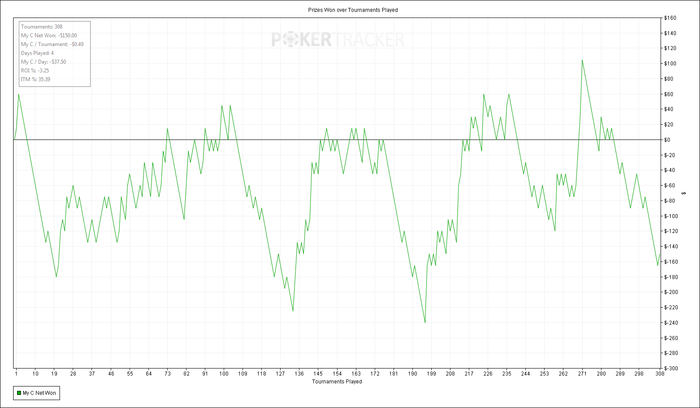 Итог за 14,15 и 17 апреля: по EV фишкам за турнир ооочень плохо - примерно 33 фишки. Ну я думаю на такой дистанции на это не стоит обращать внимание. К тому же сам ошибки не редко допускаю .