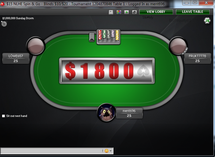К сожалению за столом фишей не оказалось. Ну впринципе по статам реги оказались то и не сильные. Сначала игра шла не в мою пользу и я спустился до 370 где то очков, но потом один все таки вылетел: