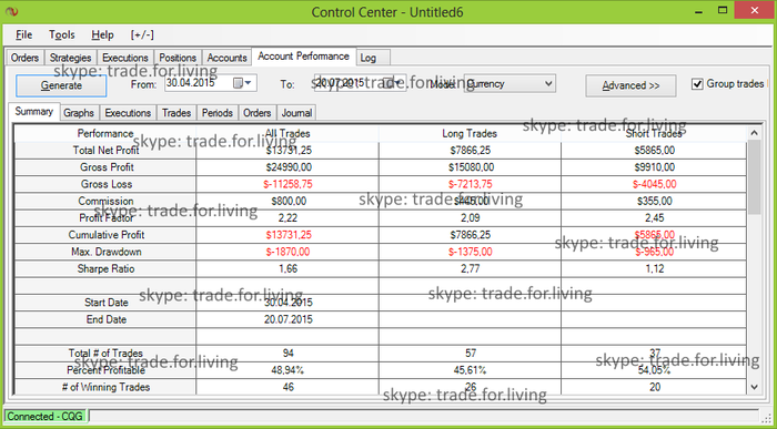 Минимальное количество контрактов 5, Максимальное количество контрактов 15 до получения "безубытка" (20 в случае инструмента с пониженной стоимостью тика), далее можно увеличивать в разумных пределах (пирамидинг по тренду из прибыли) и в пределах внутридневного риска по итогу.