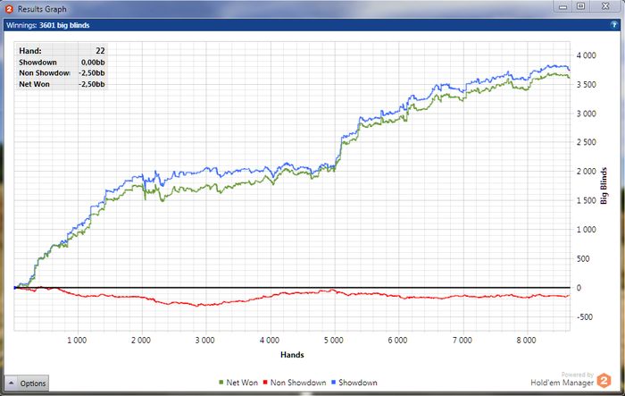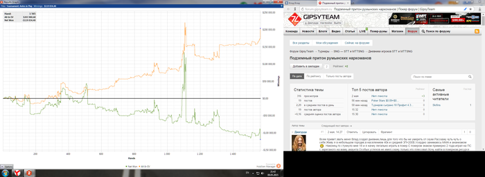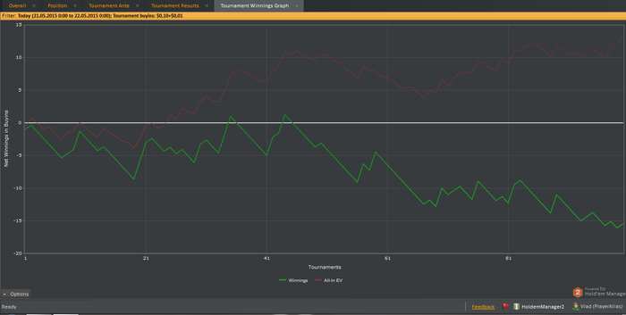 Давно не отписывался,да и писать то нечего,играю совсем чуть-чуть,с момента последнего поста примерно 70 турниров. Ну дела идут не плохо скоро собераюсь на 1$ лимит. БР:на пс 63$ на ВХ60 Эвро(пойду полужу на них) График от последнего поста и ещё одна хрень ,не знаю как называется