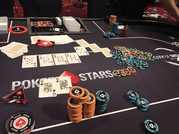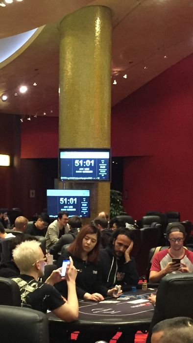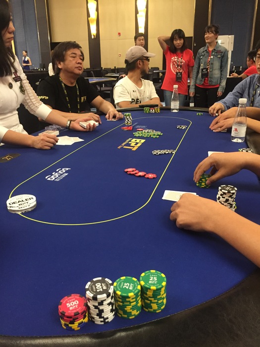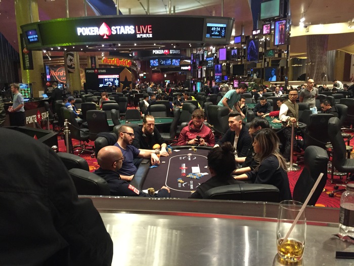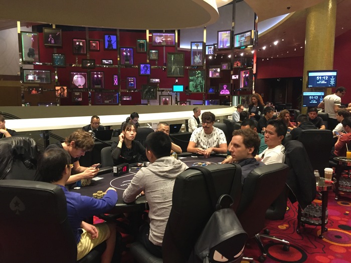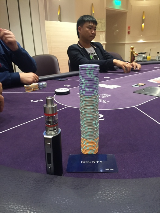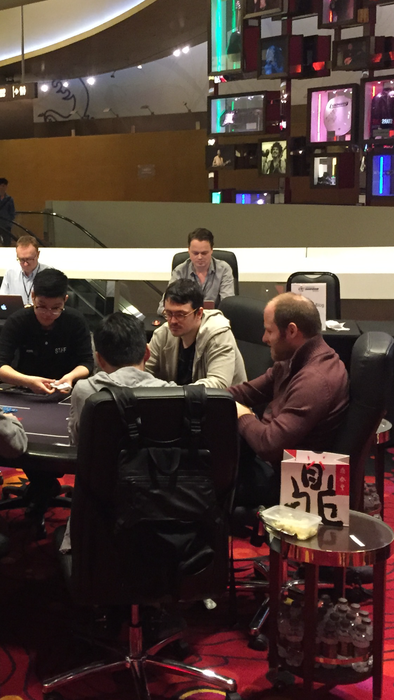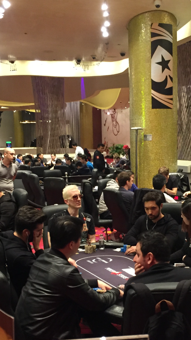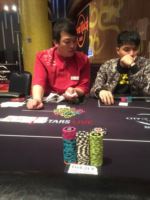 Заселились в отель и сразу пошли играть крайний стартовый день 1 С Pokerstars Cup Macau за 500$ Стол попался очень сладкий, я за 2 часа сделал 4 стартовых стэка, но потом один Индус мне все испортил протащив свой гатшет до ривера. После нескольких неудачных раздач против него, я остался как всегда короткий и вынужден был играть от стэка.Играли с 9 вечера до 3 ночи, игра была до призов, из трех стартовых дней в день 2 прошли 88 из 448 и мы с Артуром в том числе. У меня был стэк 6 бб на день 2.