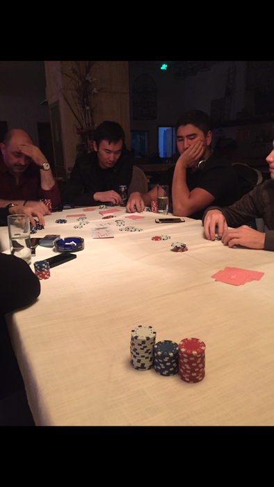После этого турнира планирую сделать небольшой перерыв в покере до весны. Раз в неделю\две собираемся с ребятами играем кэш, многие мои друзья и товарищи, поэтому я их стараюсь учить играть хорошо, но они не всегда справляются, поэтому кэш выходит стабильно в плюс, так же играли один раз турнир, был мой новый знакомый китаец офлайн профессионал, (он выйграл браслет на одном из сайдов WPT, на фото в желтой футболке), со своим другом, которого он тренирует, ученик играет всего год, но уже имеет в активе 2 победы, включая хайроллеров ВРТ и несколько финальных столов на крупных сериях в Китае, и призовых на 50К у.е. ! Турнир в итоге я выиграл с первой попытки, было 9 входов и 13, реентри. Собираемся с местными играть в мафию раз в неделю, пока не втянулся, но становится интересней от игры к игре, сторожили говорят, что получается у меня не плохо))