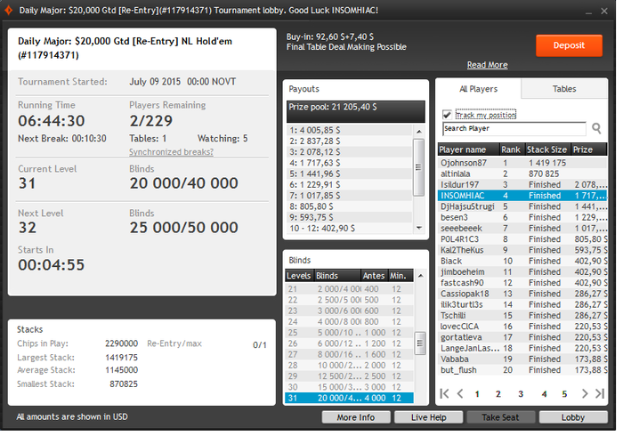 888 если будет так колхозить с серверами, то точно пойдет лесом. на фтп хорошо шел в брауле, пока не пришли божественные КК которых надо фолдить сразу нафиг 4бет с ББ Матвейчука и там АА обв