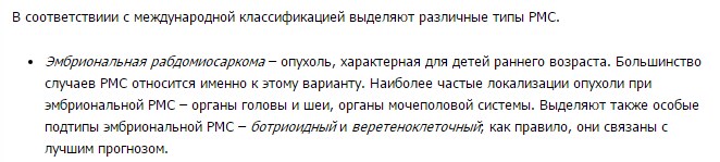 эмбриональная метастатическая рабдомиосаркома Тазовой области