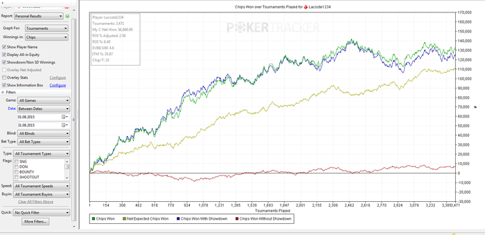 Первый блин комом, (винрейт, количество).... продолжаю работать дальше. В августе хочу наконец-то взять вершину в 5к игр, чтобы убрать осадок от невыполненного марафона. Часто появляется чувство вроде: "как меня еще терпит этот покер, я столько лажаю". Каждый раз кажется что сегодняшний день - это чуть ли не последний шанс показать богам покера, что ты реально хочешь задержаться тут подольше. Но оглядываясь назад понимаю, что мог бы сейчас сидеть, грезить про "12ев\бб на 15шках, супернова до Н.Г. и 3к игр\месяц". Так что буду дальше пинать себя и просить чтоб ОСТАЛЬНЫЕ пинали),...бо нужно поторопится с переходом на 60ки!