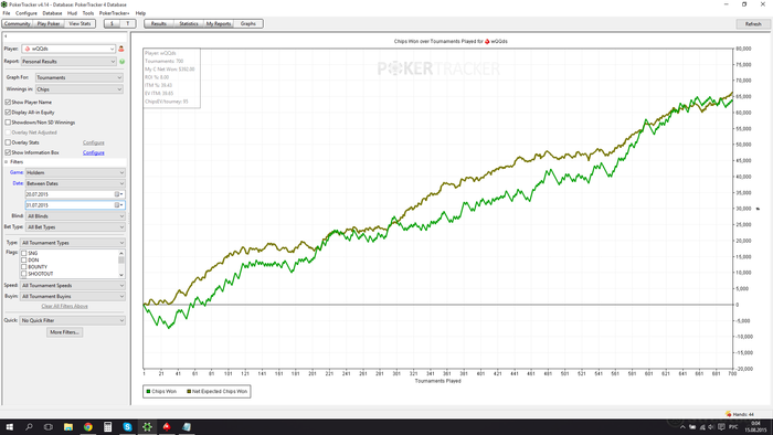 Я принял решение прервать марафон. Можно сказать, что я сдался, что я говно. Возможно это будет верно. Но я для себя извлёк огромный опыт! Я понял свой ресурс. Очередной раз убеждаюсь, что в погоне за количеством - теряешь в качестве. Вчера в середине забега я имел около 100 чипсов. Думаю, если бы я передохнул и посмотрел потом раздачки, поработал с калькулятором, то к вечеру играл бы более качественно и не опустился до 29 фишек.