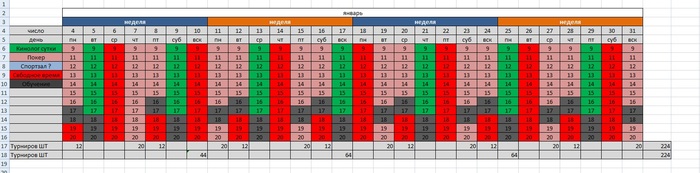 Работу с разбором наигранных рук продолжу в том же ключе, она достаточна эффективна. В школе рекомендуют переход на аби 8 но пока мой банкролл к этому явно не готов, нужно остановить траты и копить деньги. Ниже выложу график, а так же расписание.
