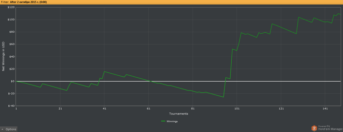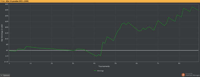 Играл не много за эти дни, 60 турниров в +20$. Бр утроил 36,51$. Пока что стараюсь исключать турбо турниры, играю обычную структуру, 1,5/9мах и 1/45мах. Думаю задержусь на них пока не достигну отметки бр в 100$. Ну и нужно заставить себя играть как можно больше турниров в день.