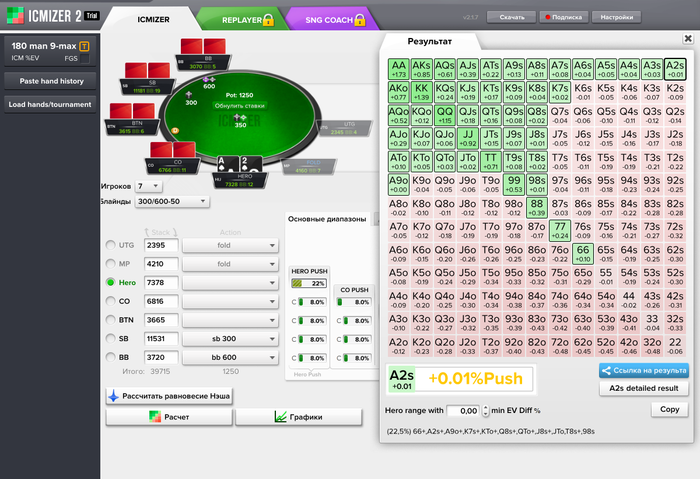 Регистрацию остановил примерно в 23:00 по Мск. И остановил не потому, что народ уже плохо регался, а начал тильтовать. Думаю что к утру вполне можно было и 50 добрать при желании. Результат на тот момент был -$35 и оставалось запущенно столов 5. Но взял себя в руки и дошел до топ 1 и топ 2.