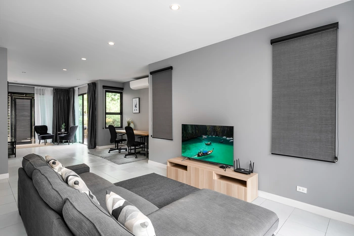 Идеально подходят для как катки, так и для отдыха. 550 кв.м, 4 спальни. В каждой вилле бассейн, тренажёрный зал, комната-кинотеатр, большая терраса для на крыше с барбекю, шезлонгами.
