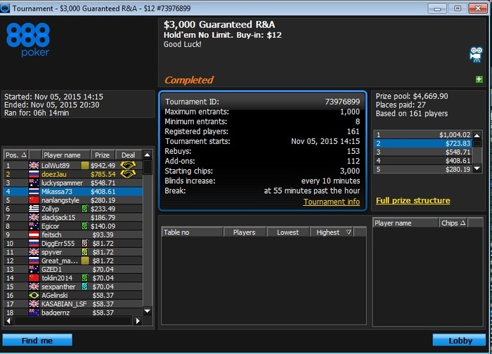Владух, не знаю, как там у вас в турнирах, но, имхо, ривер ты уже "вникуда" ставил. Выбить пику маленькую? Ладно, это всё хуйня, мелочи жизни. Главное, цели расставлены, осталось их достичь! Удачи! Ну, и монетки тащить по-любому!