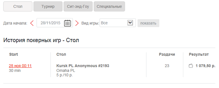 Небольшой отчетик по марафону. За 5 дней сыграно 85 турниров в +10400р. Кеш +1100р, в начале загрузки, пока было мало столов подключил столик кеша омахи: