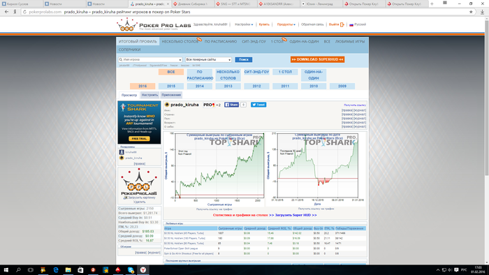 Прошел первый месяц в новом году :) Пора показать небольшие достижения :) Задачи поставленные на январь практически не выполнены но отыграл в + хотябы это радует :) Стал играть поувереннее , разборы в конференции дали свои плоды. Спасибо пацанам, а в частности Роману dividik17, Аркаше calmucco, Александру A1.Alexander, и особенно Сане alexpetrukhi нашему мозгу программеру, желаю чтобы он переборол себя и начал катать по жести :) Купил starshelper, настроили мне ХМ. Начал смотреть стримы - таурусов красава, ебурегов тоже очень нравится как играет :) Ну и бахрома веселит )) + EV )) Из задач на январь выполнено только попадание в топ 20 открытой покерной лиге :) +30 баксов, хотя если бы не тильтовал наверное мог попасть и топ 5 :) Задачи на февраль: 1) Отыграть 4000+ мтснг 2) Подняться на лимит повыше на 1.5 на 45 человек и закрепиться там. 3) Купить icmizer хотябы на квартал развивать скилл на финалках :) 4) Отыграть 100 не дорогих мтт :) 5) Учиться, Учиться, Учиться :) Всем ГЛ :)