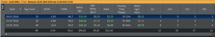 lsv78, Привет , сразу извиняюсь за критику . Тоже играю на 888poker sng 9maks turbo i regspeed . В скором времени начну подъём по лимитам . Начну с того , что играть лимит за $1 это потеря времени очень конкретная , лучше сразу прыгать в $3 региспид так как там тоже куча рыбы и этот лимит иожно очень быстро разорвать и идти дальше . Второе на рег спид снг уж тем более за бакс раз ты играешь рой в 8% , это просто смешно , такой рой можно показывать в турбо формате на лимите допустим за 10 баксов , в рег спид же рой должен быть не меньше 20% , а на тройках вплоть до 40% . Но так или иначе желаю тебе удачи в твоих начинаниях , может встретимся за столами .)