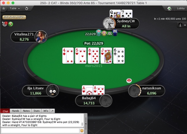 Действующие лица и исполнители были все те же: Борисов, Панчулидзе, Кириенко, Шершнев, Шумилов, Карпик, Сергей "jocker666" Чернов и, буквально запрыгнувший на подножку уходящего поезда, а потому практически обреченный на успех, Плигин. В единственном сателлите на мэйн у LotosPoker было на одного больше.