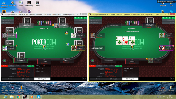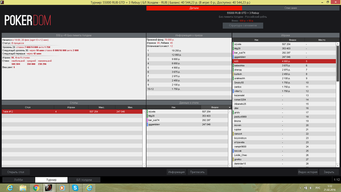 Update,подвел меня сегодня ноутбук раза 4,сначала просто завис ,когда было активно 6 столов, пришлось систему откатывать, потом терял все связи с вай фаем, потом еще разок завис, благо все быстро обошлось. Обидно конечно, что из-за этого потеряны все тайм банки и мои нервы шатались ^_^ Завтра ВС , а это значит что буду играть сандей шанс, правда 55 t$ на ру покере и я не знаю, можно ли будет играть допустим основную загрузку с покердома, а играть сандей шанс через сайт ру покера, завтра у саппорта уточню все ньюансы. Вот графон, чувствую приближающийся апчик :)