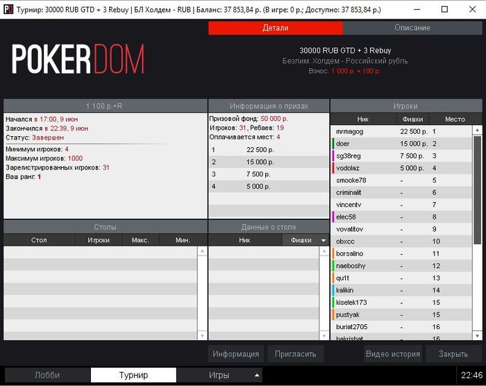 Отчет за 10.06.2016 Количество турниров - 25 Общее количество турниров -167 Профит - 6422.5 Общий профит -75408.82 4 раза стал баблбоем и все 4 раза уебали снизу, ну и выиграл 2 турика . В общем зачете чуть приблизился Завтра отдыхаю ,сгоняю на природу, а воскресенье уже свеженьким буду тащить