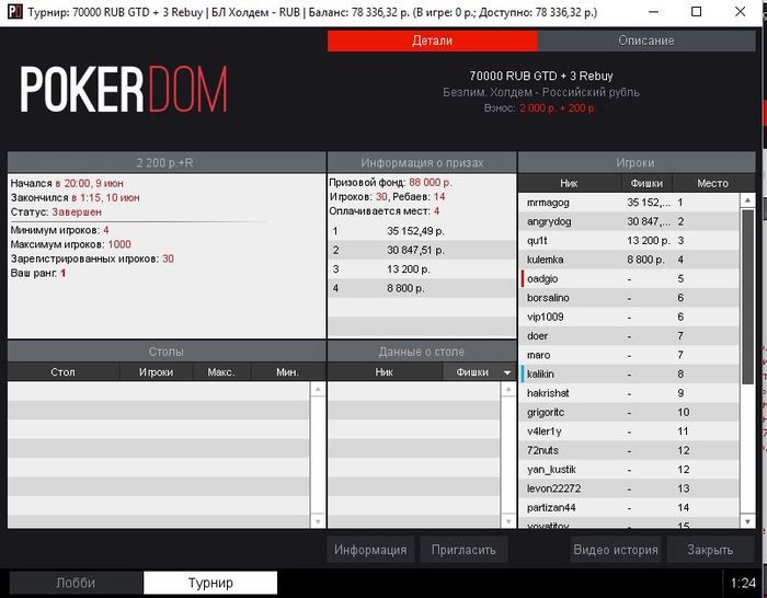 Отчет за 14.06.2016 ,16.06.2016, 18.06.2016 Количество турниров - 56 Общее количество турниров -271 Профит -16538 Общий профит -72141 На примере этого месяца я понял, что такие форматы марафона все таки не для меня, но по крайней мере пока, я понимаю ,что если бы я отыграл хотя бы в полтора раза больше то был бы в тройке точно, но я много пропускал, много жил так скажем, много видел , много чувствовал, слишком много для таких марафонов. Поэтому в этом плане закономерный результат пока что и о том, что так вышло я не капли не жалею, но все таки постараюсь отыграть достаточно, потому что цели по профиту никто не отменял.