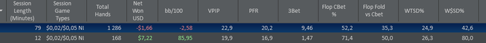 SB: $8.27 - VPIP: 17, PFR: 13, 3B: 6, AF: 1,4, Hands: 677BB: $5.00 - VPIP: 39, PFR: 0, 3B: 0, AF: 6,0, Hands: 23