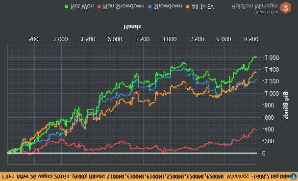 locb, около 14 стеков. На 5к рук вин на шд 39.9 ввсф 37.5) Не привык в такой даун играть. Я такие гавноколлы делал, на нл200 даже 29о запушил на 4бет и проебал)