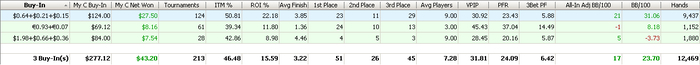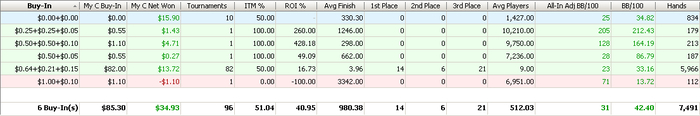 Статистику выкладывать, честно говоря, стыдно. Потому, что знаю, что играл я отвратительно (в основном в 5-й день) и при этом еще и не в минусе. Но раз в условиях написал, что буду выкладывать, то так тому и быть.