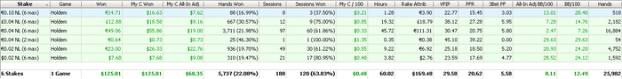 SB: 124.25 BB (VPIP: 25.50, PFR: 21.33, 3Bet Preflop: 11.26, Hands: 716)