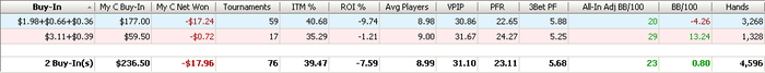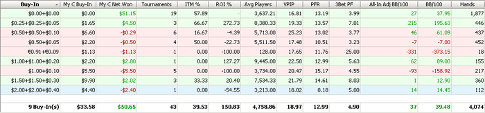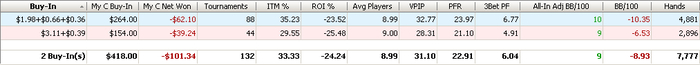 BB: 157.25 BB (VPIP: 17.36, PFR: 13.19, 3Bet Preflop: 9.09, Hands: 147)
