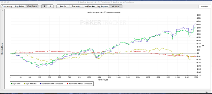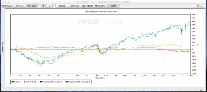 Сегодня снова сыграно не так много рук. Так как сел играть в то время, когда я уже обычно заканчиваю, плюс то, что выходной, заметил, что поле сильно изменилось, игроков с, имеющейся на них статистикой, тоже практически нет. В результате, сессия началась не так удачно, как хотелось бы. Но в итоге, всегда найдется пару фишей, на подобие тех, которые сидят здесь на форуме и умничают, что книга Ханга - это отстой. Если бы они прочли хотя бы первую главу, то не делали бы таких глупостей как в этой раздаче