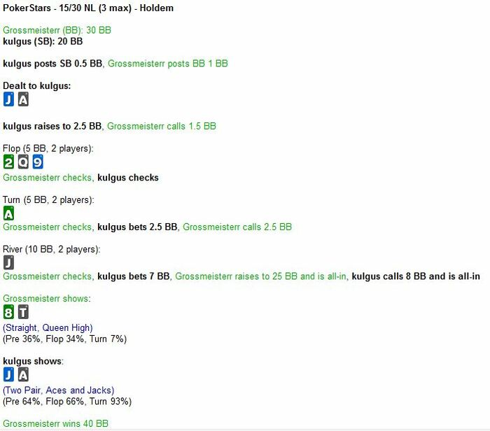 Очередной месяц позади. Не могу сказать что я доволен своими результатами, так-же не обошлось без подтильтовки под конец месяца, но и отошел от этого довольно быстро. В моем случае подтильтовка приводит к более лузовому стилю игры, что на десятках имхо является не лучшим вариантом, в силу особенностей поля. А особенности в том, что большинство регуляров довольно тайтовы, а большинство слабых игроков довольно часто готовы играть на стек с Q-хай (конечно утрирую но тенденции именно такие). Все еще периодически возникает проблема когда мне сдают карты а я вижу обложку карт, и из-за этого приходится переоткрывать игру, довольно часто это происходит во время раздачи, что как минимум не приятно (да это п***** как бесит честно говоря), я просто выкидываю деньги в никуда, потому что переоткрыв игру автоматом сбрасывается текущая рука + чаще всего следующая в ситауте. А если это происходит во время раздачи это может быть и минус дофига BB.