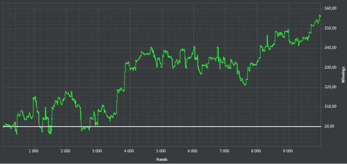 Можно подвести некоторые итоги. План по кол-ву рук я зафейлил. Сыграл лишь половину задуманного. Но все же основной целью было откатать новую страту. И на будущее - нужно ставить цели не количественные, а качественные. Понятно, что 10к - не дистанция, но все равно, я думаю, что двигаюсь в правильном направлении в плане увеличения лузовости. Впереди еще много работы. Продолжу уже на нл10.