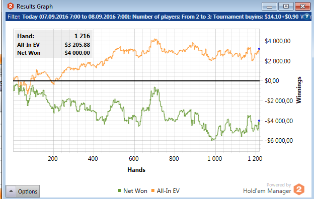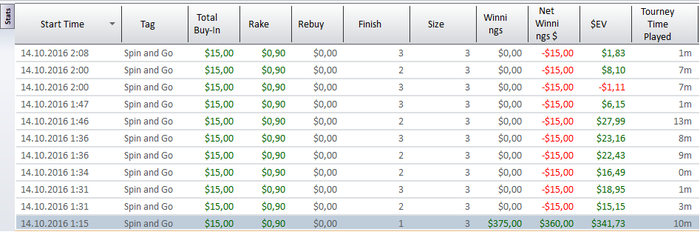 1. Poker Stars, $14.10 Buy-in (10/20 blinds) No Limit Hold'em Tournament, 3 Players