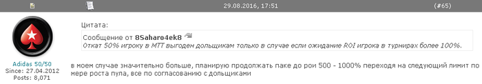 Так вот - в твоей "разработке по итму в бигах" есть как минимум один косячок. Это средние лимиты, где ты не видишь или не хочешь видеть разницу между ними и между микролимитами. Так вот, различия между бигом $1.10 и бигом $22 хотя бы в кол-ве голов, а ты сам должен понимать, что чем меньше участников - тем меньше у тебя шансов. Это априори.