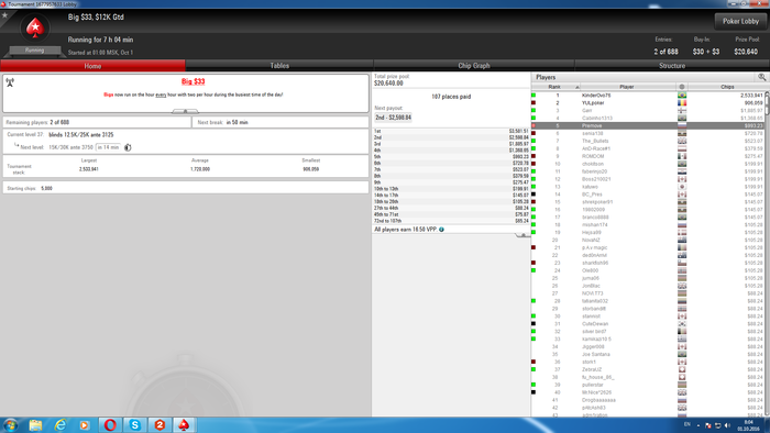Считаю биг 215 самым жестким по составу. Правда мало постфлопа играется из-за глубины:( До сих пор чувствую себя не важно, так как подхватил вирус в понедельник. Надеюсь, что к выходным уже буду как огурчик))