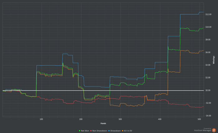 $10.44 pot ($0.52 rake) Final Board: Hero showed and won $9.92 ($4.71 net) CO mucked and lost (-$5.21 net)