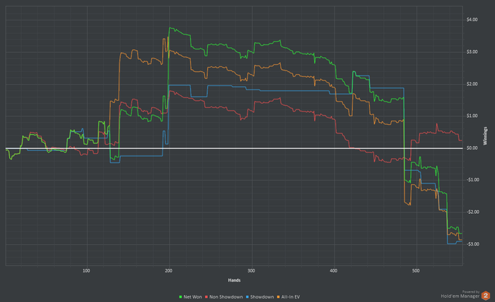 $4.03 pot ($0.20 rake) Final Board: Hero showed and won $3.83 ($1.83 net) CO mucked and lost (-$2 net)