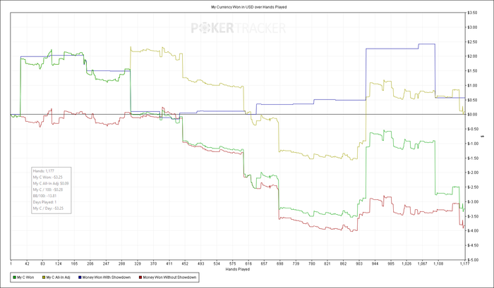 Придя с работы кое как заставил себя сесть играть и лучше этого не делать, второй день играю настолько убого. Видимо стоит уделять время конкретно одному виду заработка, мне гораздо проще посвятить весь день неторопливой катке, чем второпях бежать с работы домой чтобы откатать 2-3 тысячи рук.