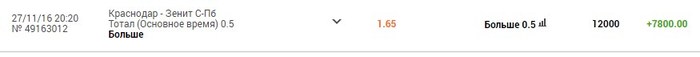 1) Краснодар с форой 0 кф 2.2 (бетсити) мои 5000 - ваши 6500